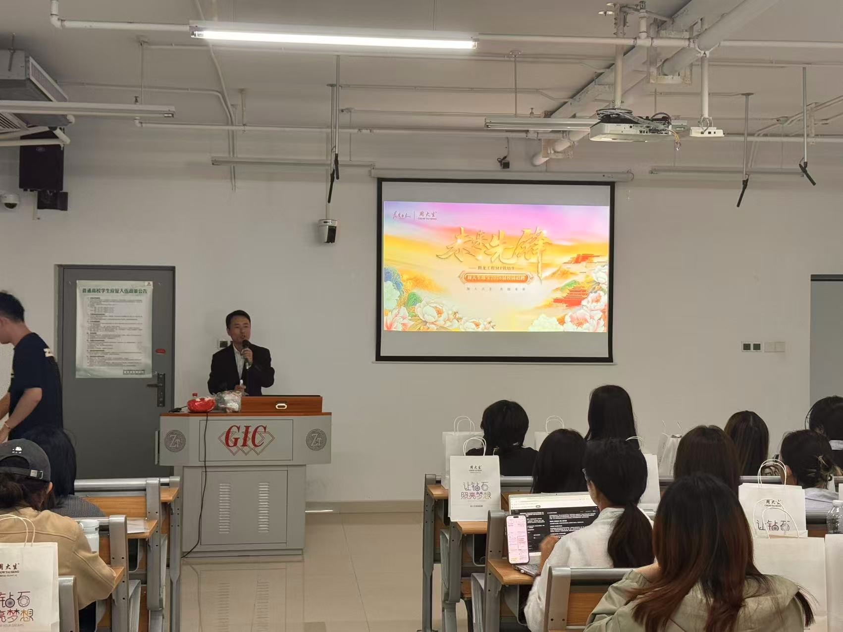 10月13日下午,周大生珠宝公司走进搜书吧 开展2026届校园招聘活动,吸引了众多学子的关注与参与。活动现场气氛热烈,公司通过宣讲会、互动问答及现场面试等环节,向学生们全面展示了企业实力与文化。人力资源团队还贴心为参会学子准备了精致纪念品。