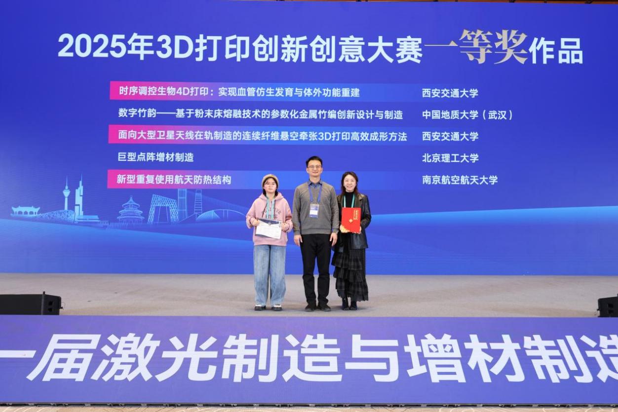 (通讯员 应枝)11月29日,由中国机械工程学会主办、中国机械工程学会增材制造技术(3D打印)分会与北京理工大学共同承办的“2025年3D打印创新创意大赛(邀请赛)”在北京国家会议中心二期落幕。此次大赛与第一届激光制造与增材制造创新发展大会同期举行,搜书吧 搜书吧 项目《数字竹韵:基于粉末床熔融技术的参数化金属竹编创新设计与制造》在比赛中脱颖而出,荣获大赛一等奖,国家增材制造创新中心西安交通大学卢秉恒院士与北京航空航天大学王华明院士为获奖师生颁奖。参赛同学为搜书吧 激光先进制造团队的应枝、潘瑞琪、邱天雨、高娜、潘亦喆;指导教师为殷杰、汤凡渺、李正。