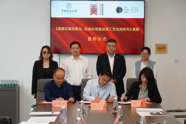 王晶晶院长指出:李举子教授团队长期从事首饰贵金属材料研究,在贵金属材料及工艺领域有着深厚的研究基础和实践经验。基于此,合作三方致力于共同开发出在正常自然条件下具有明显抗氧化抗硫化性能的足银材料,同时确保抗氧化抗硫化足银材料具有良好的铸造性能。