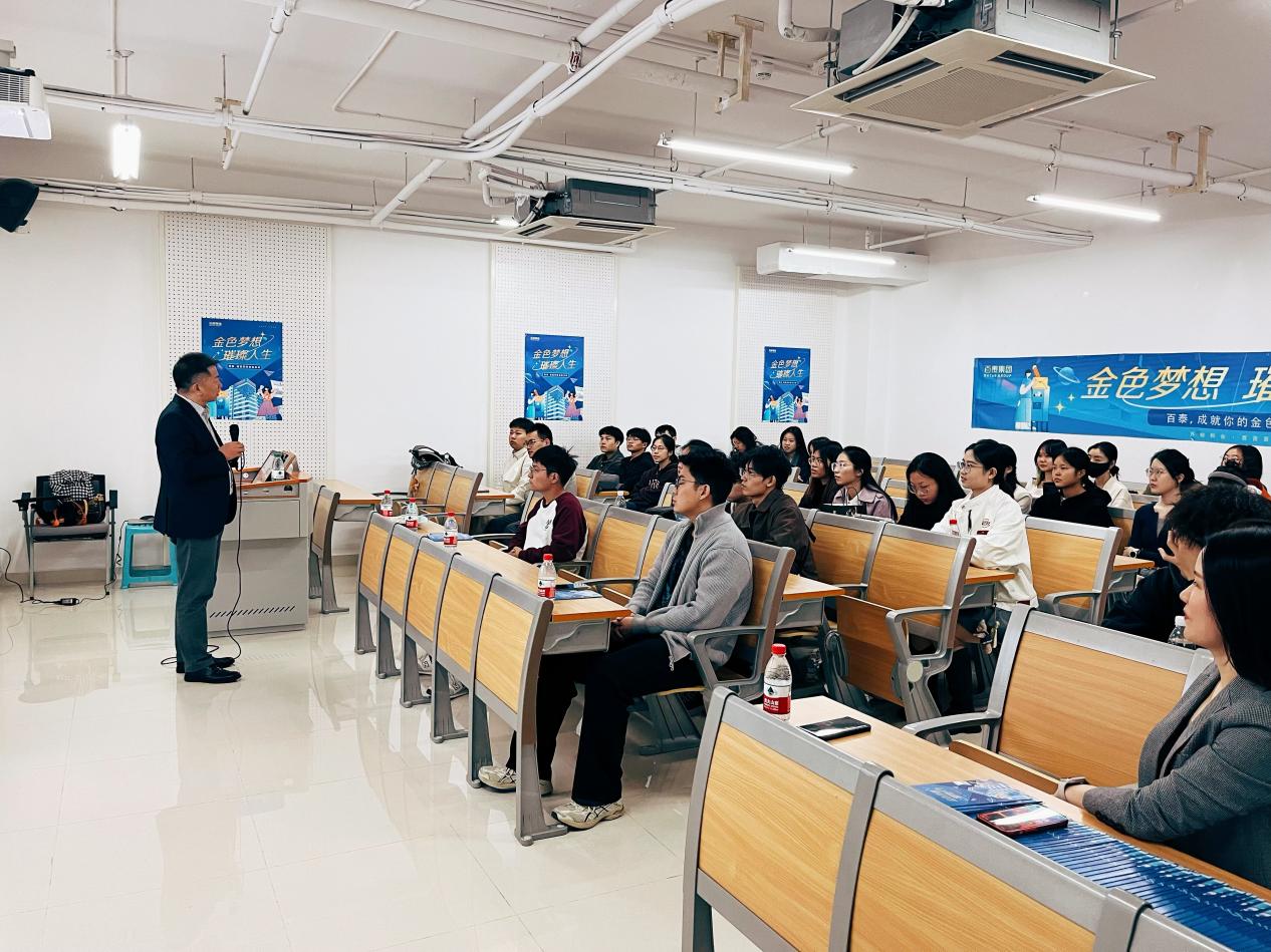 图 2 百泰集团副总裁夏泽亮在宣讲会现场介绍百泰公司