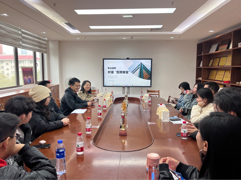 活动首先以“市场洞察访谈”形式展开,范琦珠宝五位经理就珠宝行业市场动态、珠宝品牌关注度、岗位核心能力需求等与同学们进行深入探讨。通过个性化问答,同学们更直观感受到企业用人标准与职场素养要求。活动中,范琦珠宝还为积极参与访谈的同学赠送了品牌首饰,以“珠宝人”的专属仪式感传递行业温度。