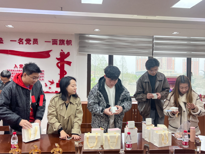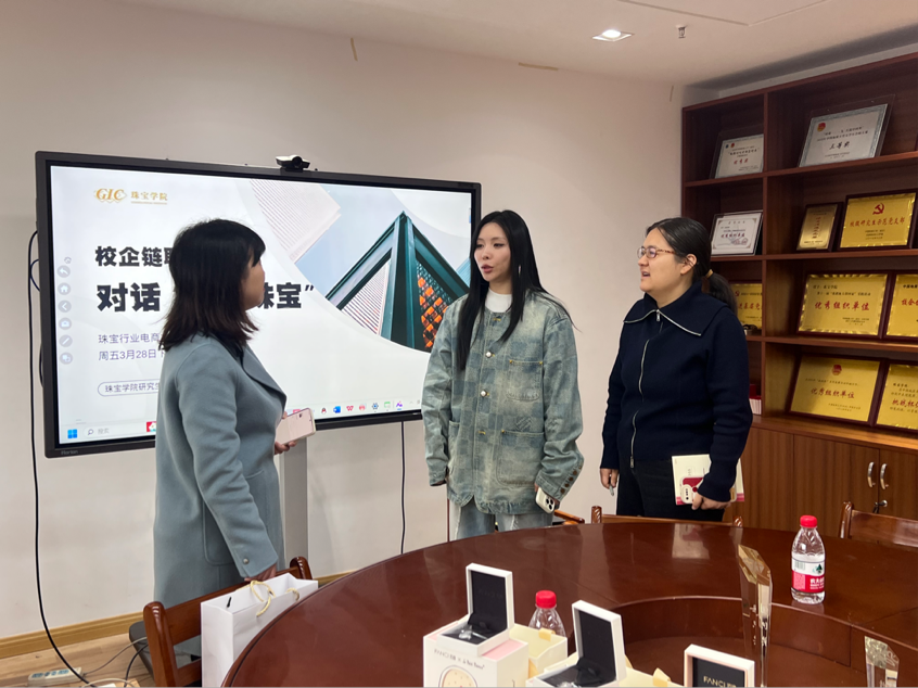 陈汉英、汤凡渺与范琦珠宝产品设计经理郑筱雪亲切沟通,就实习就业合作、人才培养等议题展开深入探讨。陈汉英书记表示,此次活动是深化产教融合的重要实践,未来学院将持续引入行业资源,优化课程设置,提升学生实践能力,助力学生实现从校园到职场的无缝衔接。郑筱雪经理作为14届优秀毕业校友,结合自身从学生到职场的成长经历,分享了企业对人才培养的具体需求,并就如何优化实习就业机制、提升学生职业竞争力提出了宝贵建议。